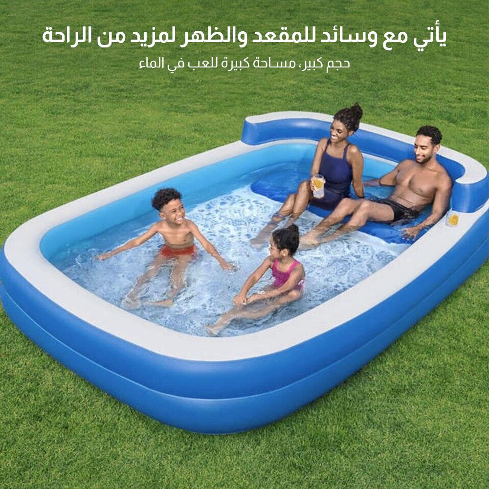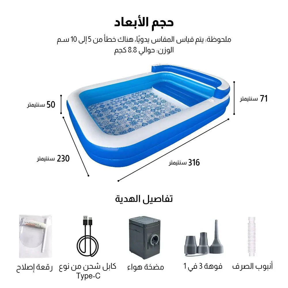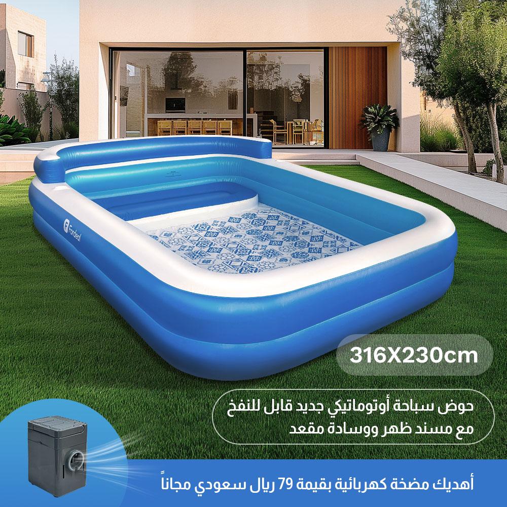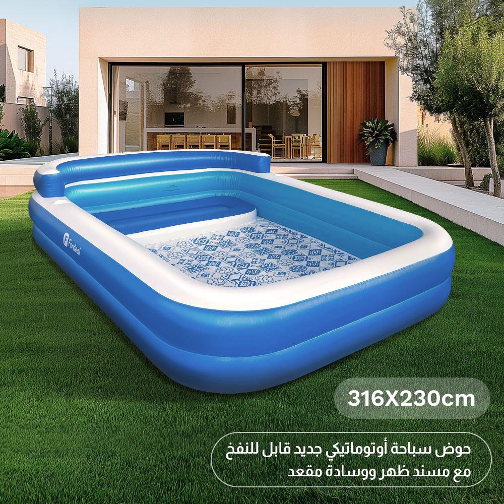 مسبح للنفخ والتفريغ تلقائياً مع وسادة هوائية 316x230 سم، يتسع لـ 6 أشخاص